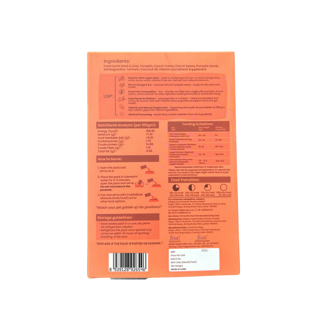 b. Grain Free Composition- gut-friendly and fiber rich veggies like pumpkin, carrot & potato for easy digestion, building immunity & sustained energy.